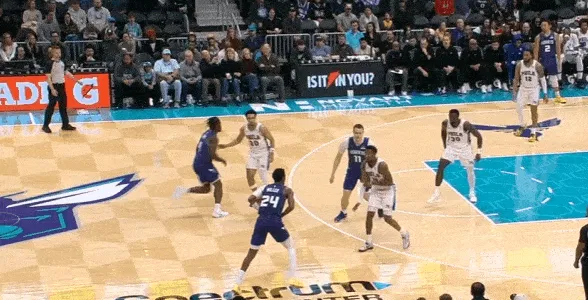 米勒对位上线的马克西因此获得快攻最前线的天然身位优势,随后和快速推进的三球获得前场2打1的优势局面。米勒右路跟进切入篮下,接三球高吊传球直接空接隔扣马克西。